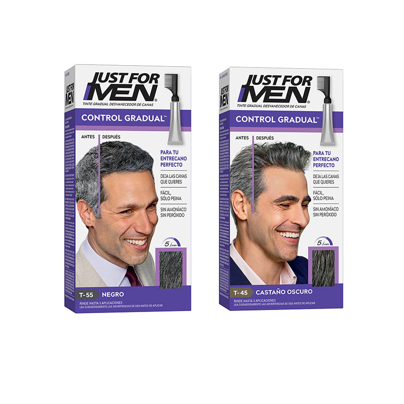 Just For Men Control Gradual es una tintura para cabello que cubre gradualmente las canas utilizando un peine, logrando un resultado natural. Cubre permanentemente las canas o hasta que vuelven a crecer, no daña el cabello, ya que no contiene amoniaco y peróxido.