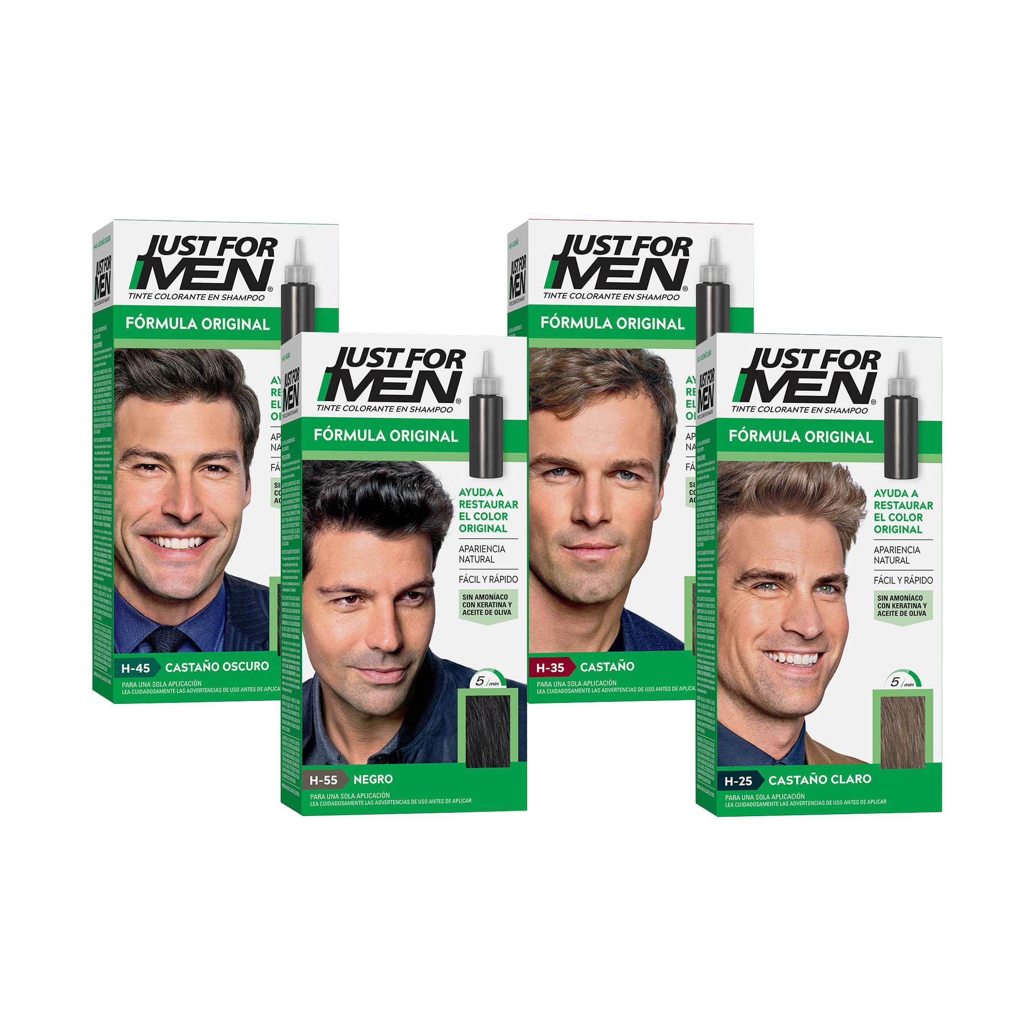 Just For Men es una marca Estadounidense con trayectoria internacional dedicada al cuidado capilar masculino. Lider mundial en coloración masculina. Con presencia en mas de 80 paises en los 5 continentes. Cuenta con una gama de Tinturas, Barba y Bigote, Control Gradual y Control Gx, presentes en mas de 1.500 puntos de venta a lo largo del país.
